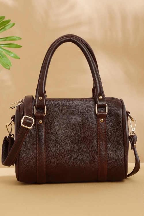 Mocha Luxe Barrel Satchel Brown Leather Bag