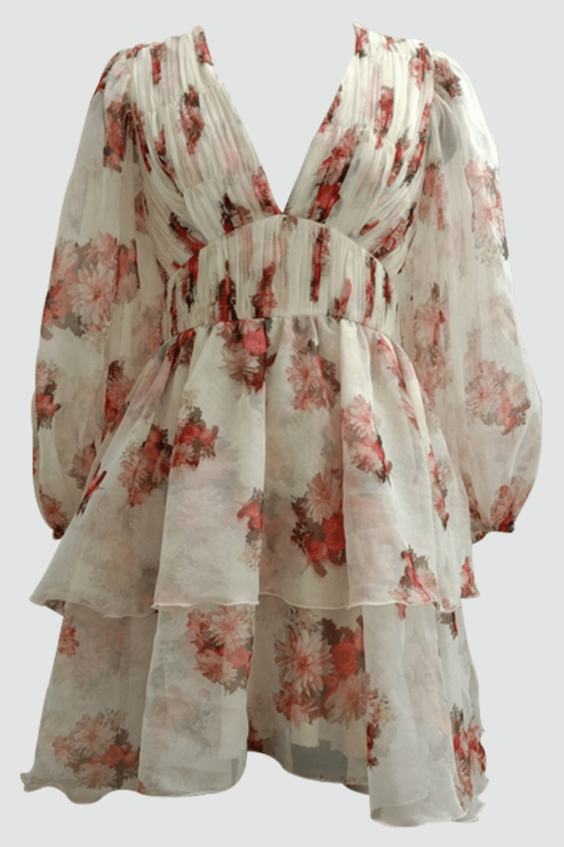 Chiffon Printed Tier Short Dress