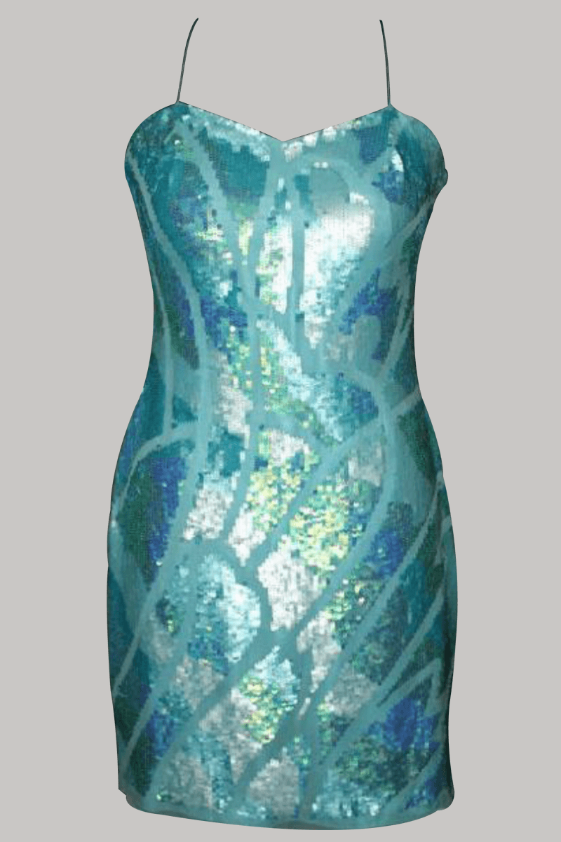 Dazzling Aqua Sequined Short Dress
