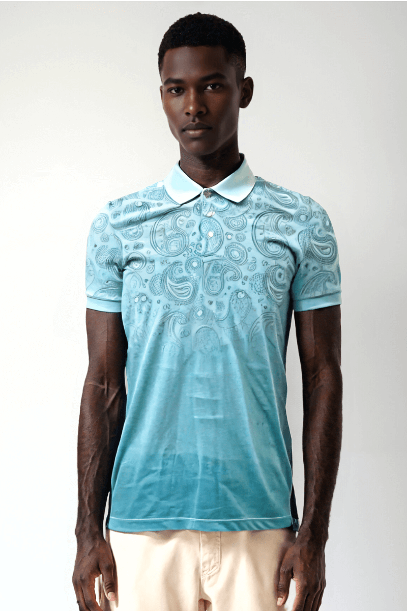 Be the first to review “Sky Blue Printed Ombre Polo T-shirt”