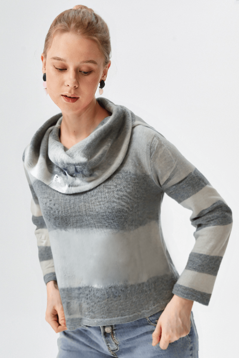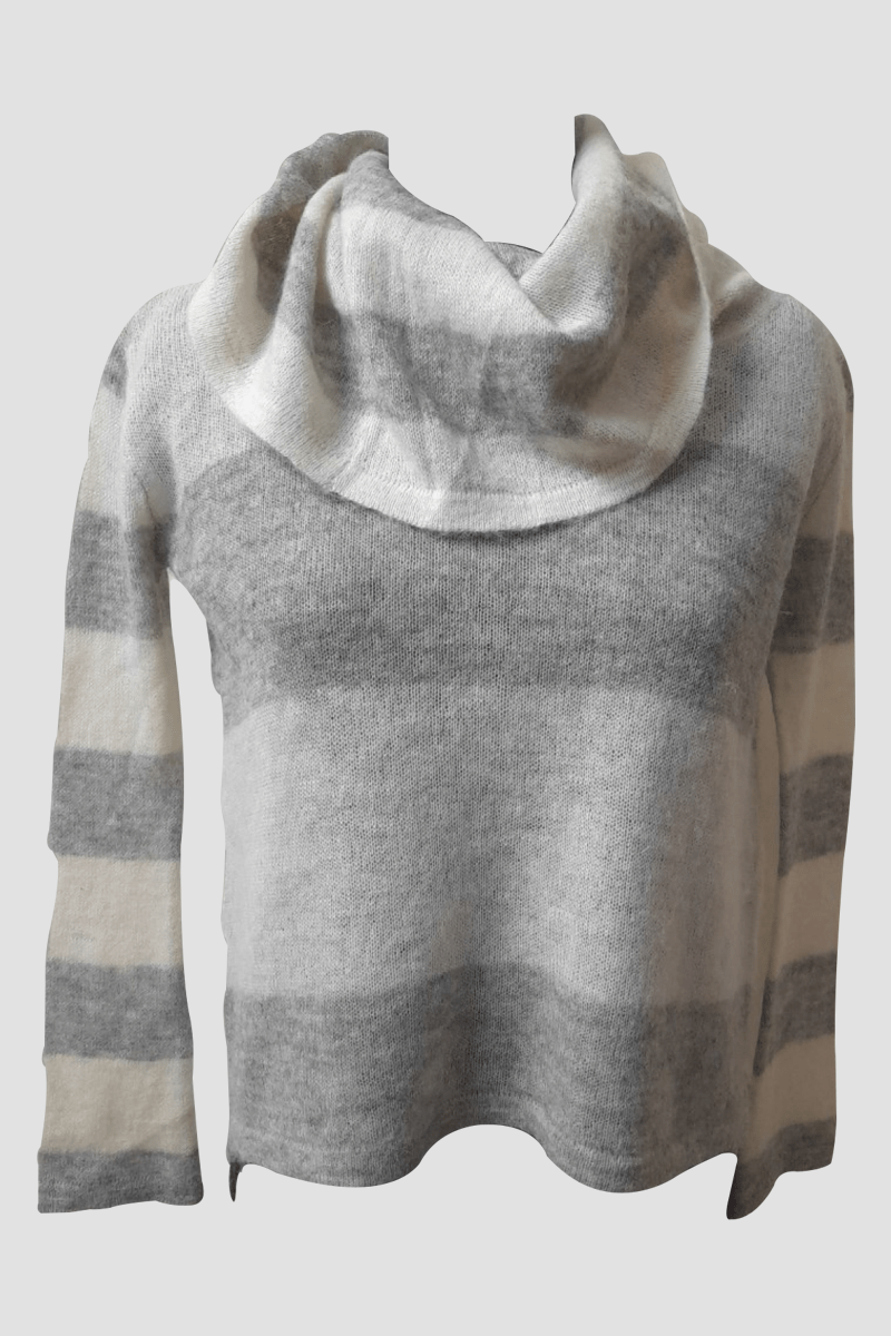 Striped Cat Pullover with Shawl Collar – 30%, Wool 15%, Mohair 55 % & Polyamide.