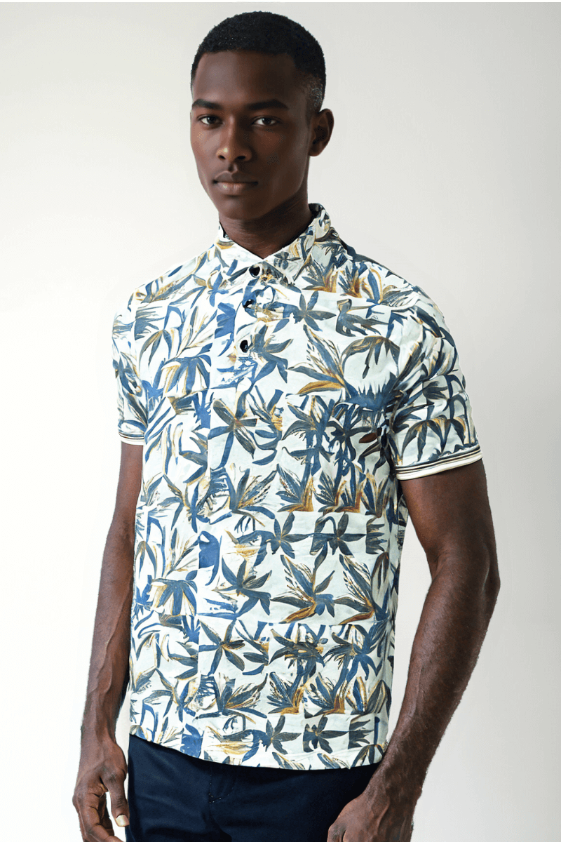 Be the first to review “White Abstract Floral Print Polo T-shirt”